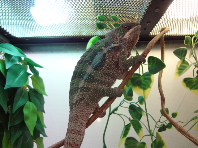| パンサーカメレオン サンバーバ♂ | 2014CB | 人気のパンサーカメレオン。サンバーバは基調色は地味目ですが、激変種ですので興奮した時の赤の発色は見事としか言いようがありません。 安心のレオレオカメレオンファーム産です。 |